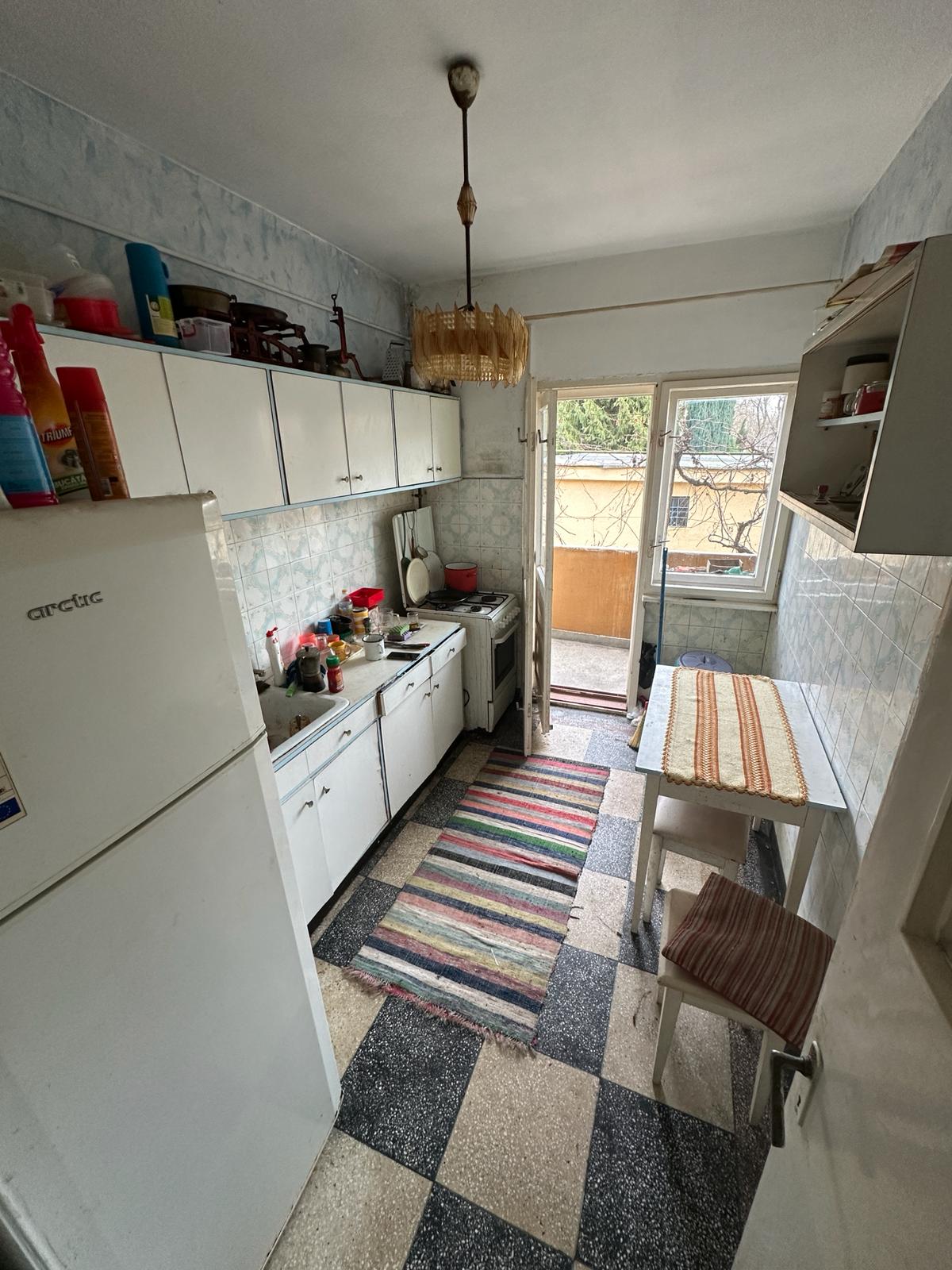 Apartament 3 camere Zona Semicentrala, decomandat, Parter Compus din 2 holuri, 2 debarale, baie, bucatarie, balcon, beci, garaj, cota parte gradina. Apartamentul necesita renovare.
